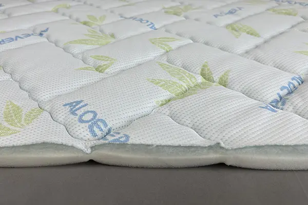 Верхнее покрытие матраса изготовлено из материала трикотаж Aloe Vera - натуральный текстильный материал, изготавливаемый на основе хлопка, вискозы, шелка или шерсти методом переплетения систем двух нитей (основы и утка) по взаимно перпендикулярным направлениям. В результате образуется эластичное полотно с петлями. Трикотаж мягкий и приятный на ощупь. Материал получил широкое распространение в текстильной промышленности. Трикотаж используют производители матрасов для изготовления верхнего покрытия для матрасов, чехлов, наматрасников.